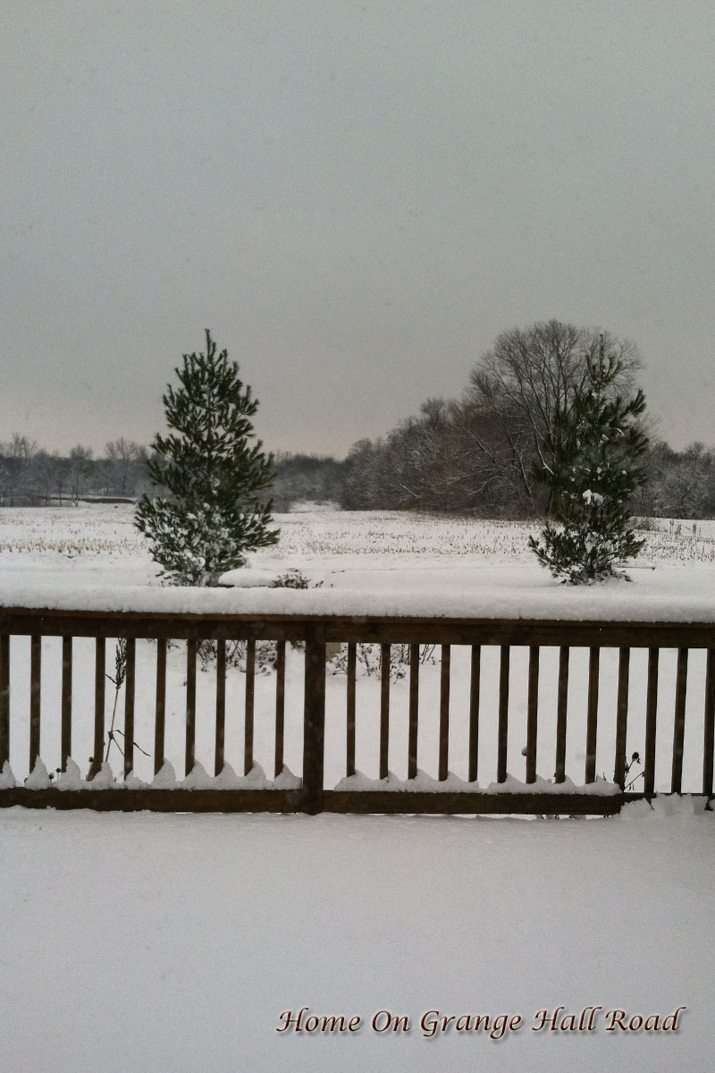 The rose bushes are barely visible on the other side of the deck railing. You can just see the top of the old sink, which is wrapped in plastic to protect it from the snow and ice. I can’t wait to see it filled with flowers and the roses in full bloom!!!