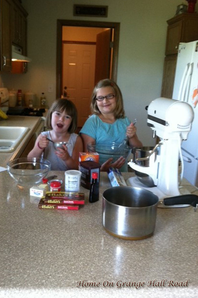 This year Lainey decided she would enter brownies. Lainey (on the left) and her younger sister, Ella at the kitchen counter ready to begin baking.