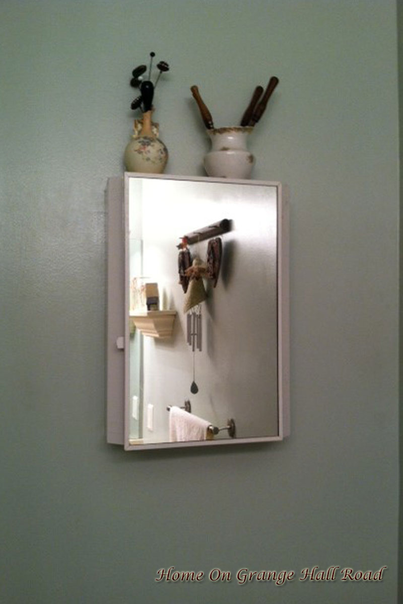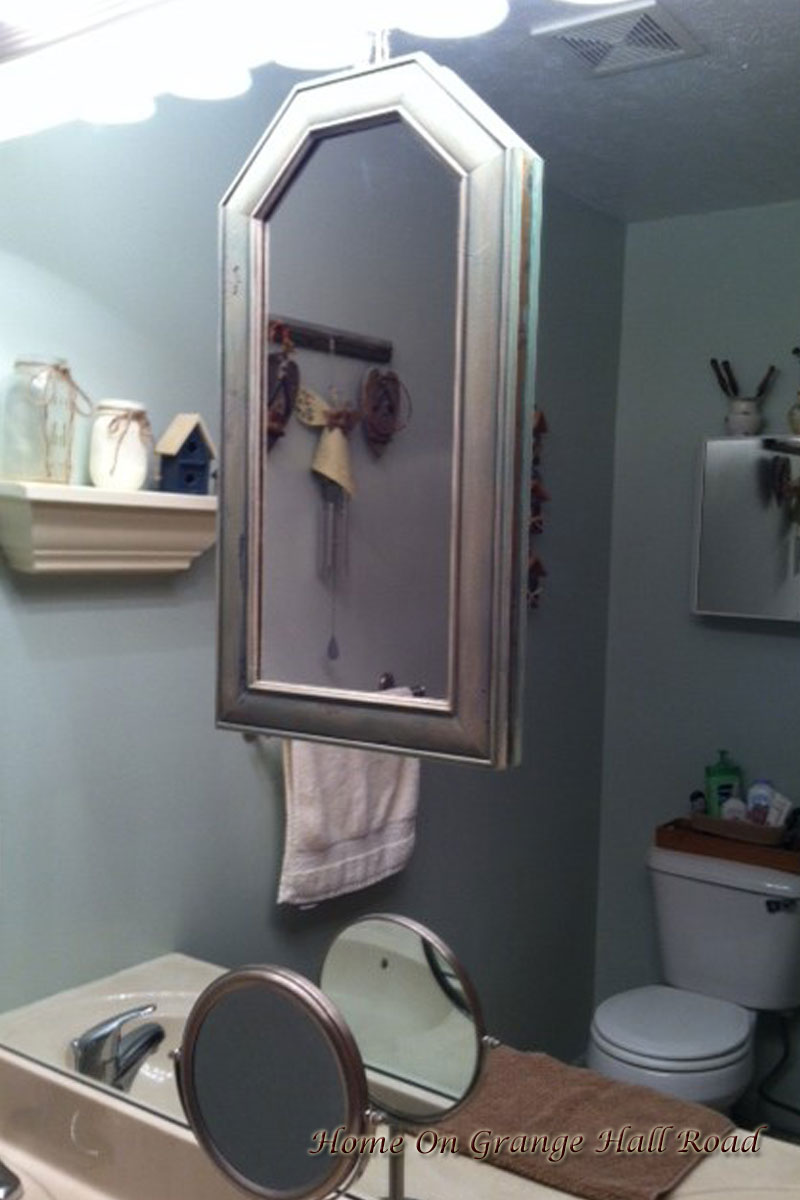 Last fall, my good buddy Marti and I attended the Hobnob Fall Harvest Market at the Tuscan Hills Winery in Effingham, IL. There were many wonderful items for sale. I noticed this mirror (which is almost exactly the color of my bathroom) on my first pass around the grounds and I thought that it might work very well in my bathroom. I wanted to think about how I could use the mirror so I did not follow the important rule of market shopping – if you see something you like, buy it. It won’t be there when you come back!! After visiting all the vendors and enjoying a delicious lunch, I decided to circle back to see if the mirror was still there. And to my delight it was and I bought it!