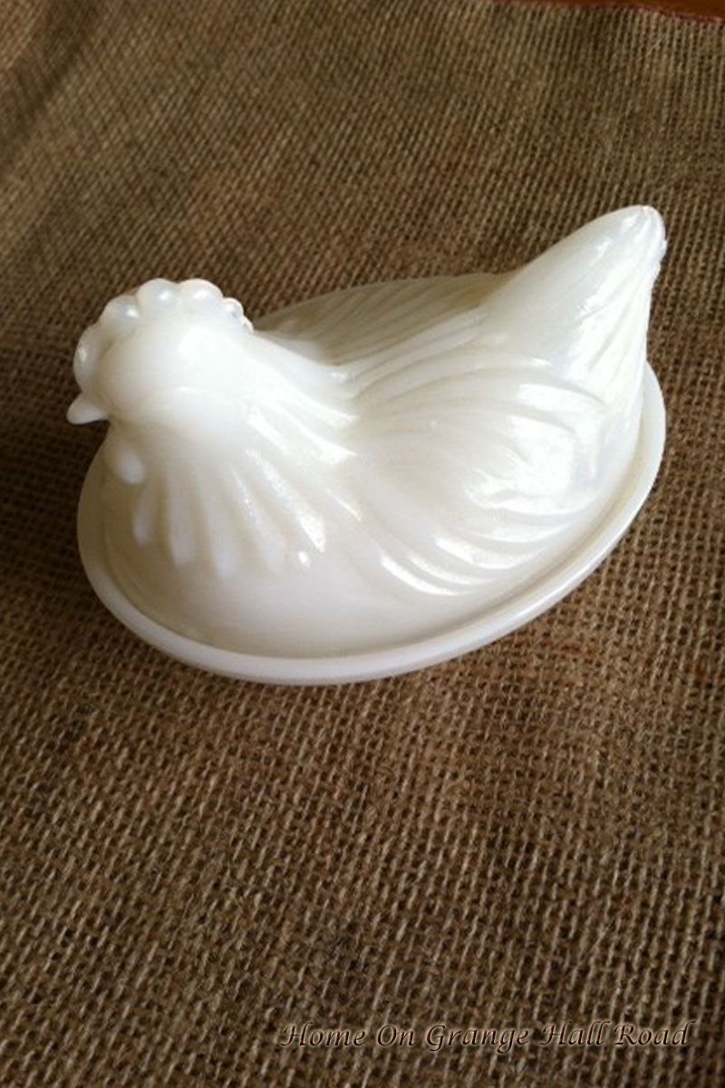 Four milk glass chicks will join the bunny.