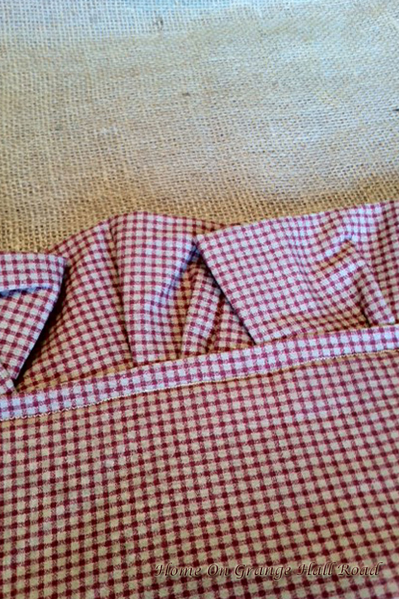 I made the burlap table runner. It is reversible with burlap on one side and a calico checked print fabric on the other side.