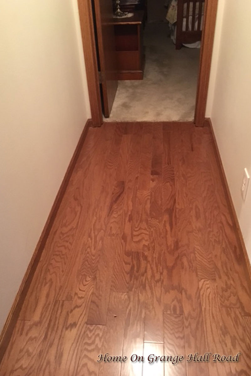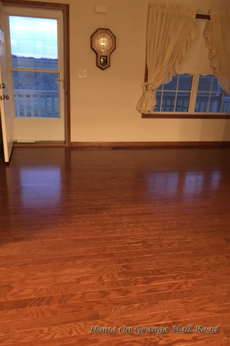 I am so excited! The new hardwood floor in the living room is done. Almost ten years ago when we built the house, we had carpeting in the bedrooms, living room, and dining room. What was I thinking!! After about two years of the carpeting in the dining room, we replaced it with hardwood flooring. As the living room carpet was showing signs of wear, and since we were lucky in that the flooring company was able to get the same hardwood flooring as in the dining room, we went with hardwood.