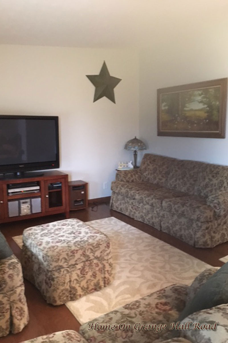 With all the furniture moved back in and the area rug, which I absolutely love!!
