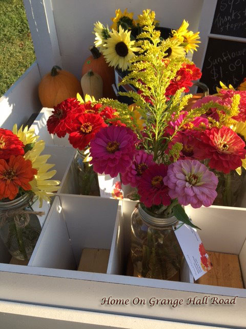 So yes, I will be back with the more flowers next year. I will stay with my old reliable zinnias, add a few more sunflowers, more giant marigolds, some black-eyes Susans, more cosmos, and some other filler plants. The pumpkins were very successful, so we plan to expand on the varieties and add more fall goodies, maybe gourds, cornstalks, etc. And maybe add a pumpkin cart to keep the flower cart company. So many plans!!! I will keep you updated.