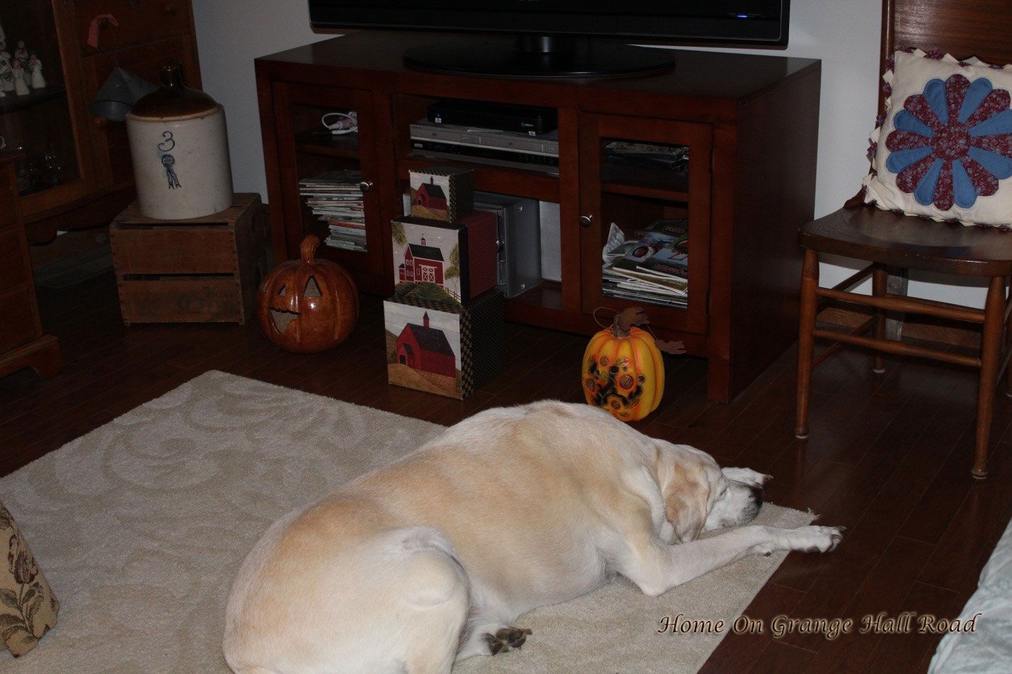 Fall decorations would not be complete without Raymond. And yes, the magazine rack is from Magnolia Market!!!
