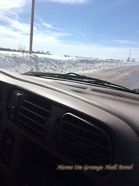 Snow plowed back from Route 91 as we returned home from Church. The piles of snow are taller than the Blazer. Notice the beautiful blue sky.