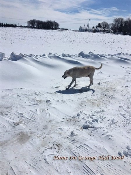 Ella and I did not do any baking this weekend. Ten inches of heavy, wet snow with east winds gusting to 40 miles per hour altered a lot of plans this weekend. By the time it quit snowing on Saturday evening and the wind continued throughout the night and into Sunday morning, it left a 2 – 3 foot drift of snow up against our garage door (which faces east and received the full force of the snow and wind for almost 24 hours). And that drift was as hard as rock. We were not getting any vehicles out of the garage for a while! Add to that the 4 – 5 foot drift that was a bit further out from the garage door.