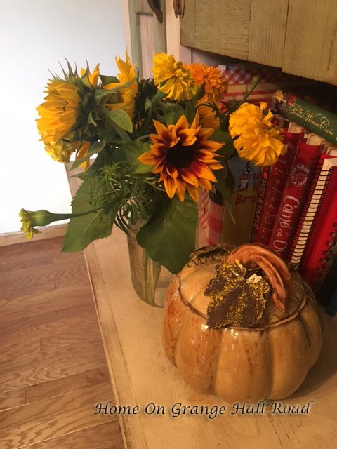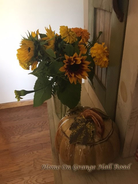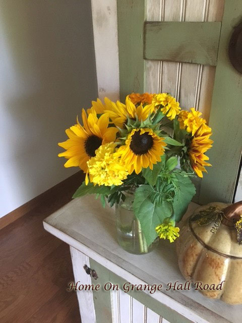 The zinnias are gone, but the sunflowers and marigolds are still plugging along.