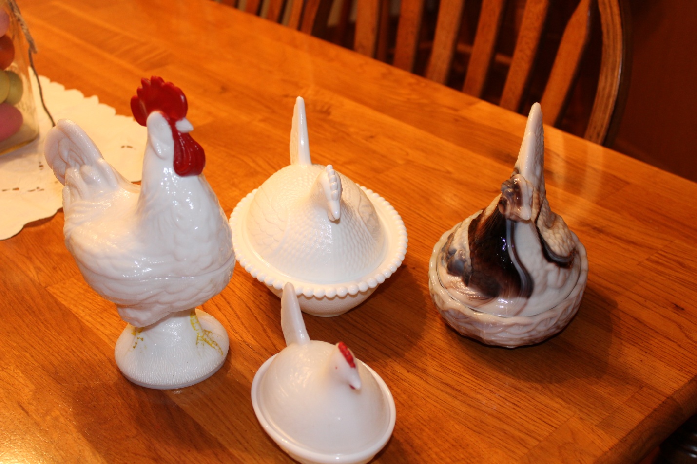 The Hoosier-style cabinet in the dining room is one of my favorite pieces of furniture. And I continue to change the items I display on the cabinet – sometimes several times a day! Even though the ground outside is white with snow and more is falling and on the way as I write this, I have decided to forge ahead with Spring decorations.